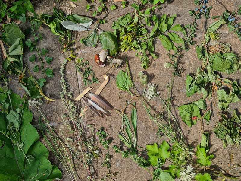 Along with sampling some of the species found along the way there will be a selection of pre-processed items to experience through the senses of sight, taste, touch and smell. For example; tinctures, ferments, preserves, cordials, syrups, sauces, crisps, soup, dehydrated foods, craft items, combustion, natural fibres, fish leather, bark craft and animal track and sign.